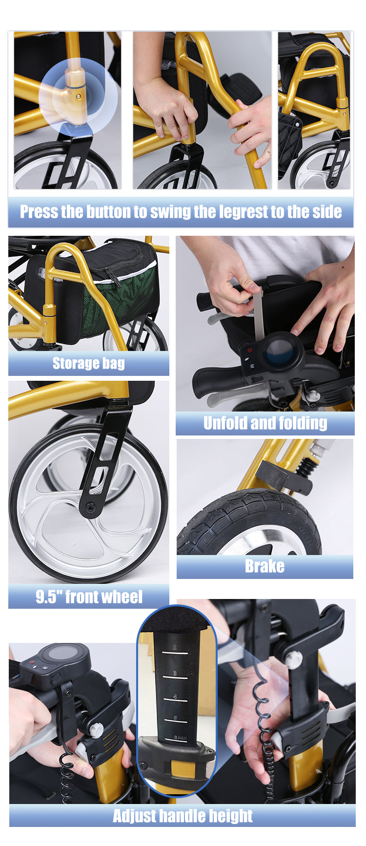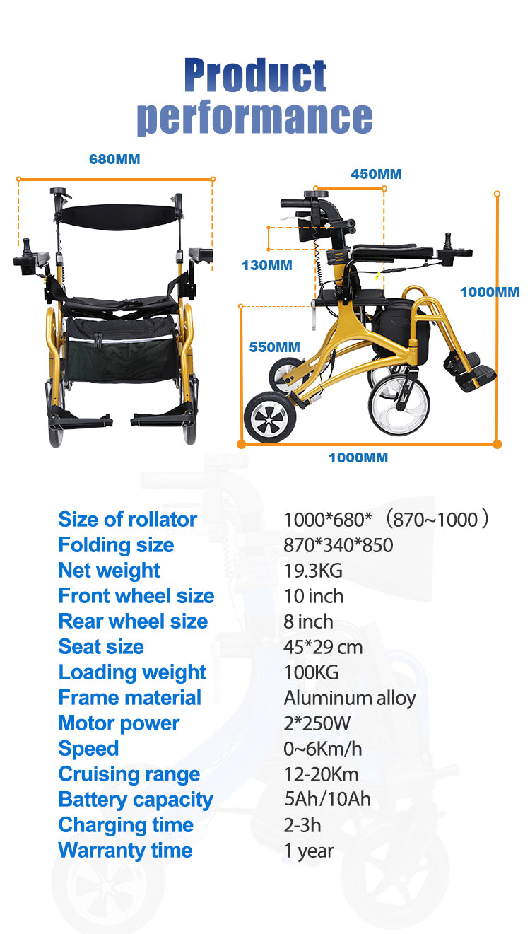 * The electric walker has intelligent rear control with handle detection function, and the walker will be locked when the user's hand leaves the handle.